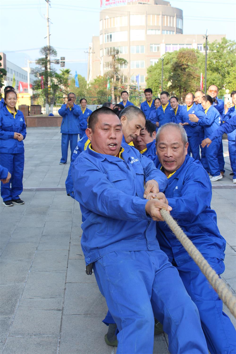 “拔河”比賽時(shí),每名運(yùn)動員都齊心合力,真正做到了心往一處想,勁往一處使。
