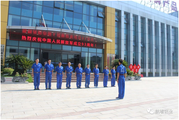 熱烈慶祝中國人民解放軍建軍93周年 為熱烈慶祝中國人民解放軍建軍93周年,重慶航墻鋁業股份有限公司于2020年8月1日在公司舉行一系列的慶祝活動。 下午16時,公司全體退伍軍人,在公司廣場集合進行隊列訓練、士氣展示。 退伍老兵們一個個精神抖擻,隊列整齊、步伐矯健、口號嘹亮,歌聲口號聲響徹整個公司廠區。 ?